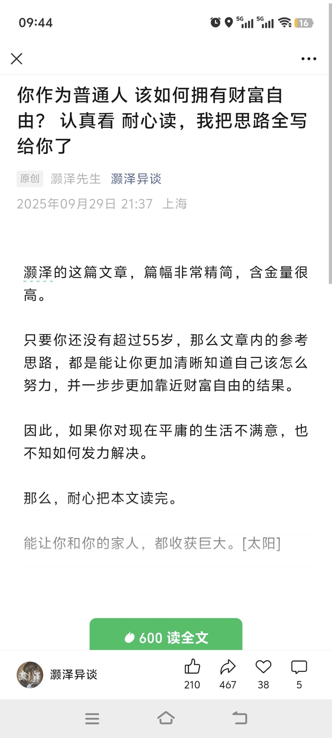 灏泽异谈付费文250929:你作为普通人,该如何拥有财富自由认真看,耐心读,我把思路全写给你了