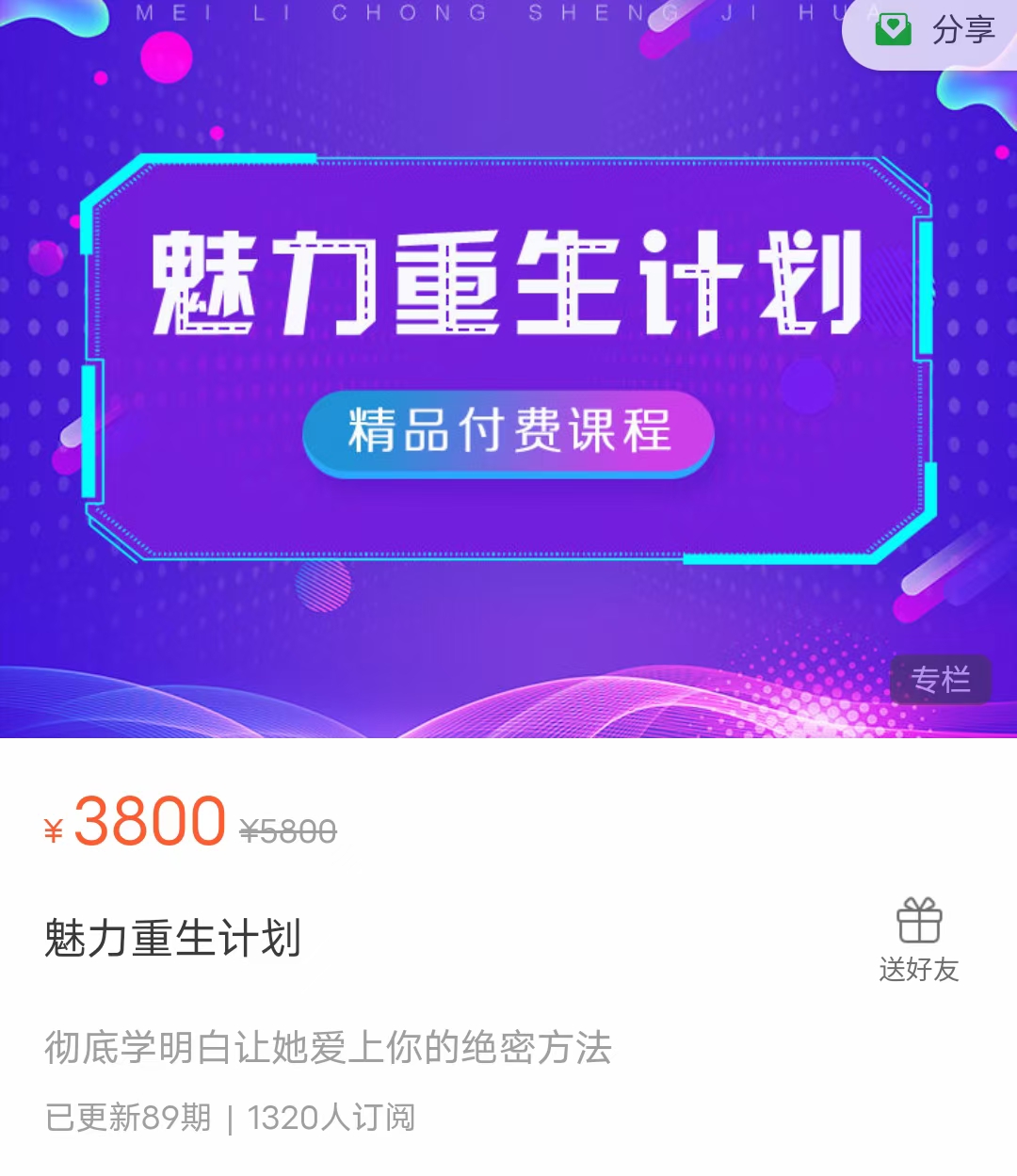 本文于 2025-11-14 15:03 更新,部分内容具有时效性,如有失效,请留言 晓杰研爱社《魅力重生计划》,彻底学明白让她爱上你的绝密方法 资源下载资源下载价格29.9元立即购买 或 升级VIP后免费升级VIP①售后QQ:32492069 ②默认解压密码“QQ28222936”