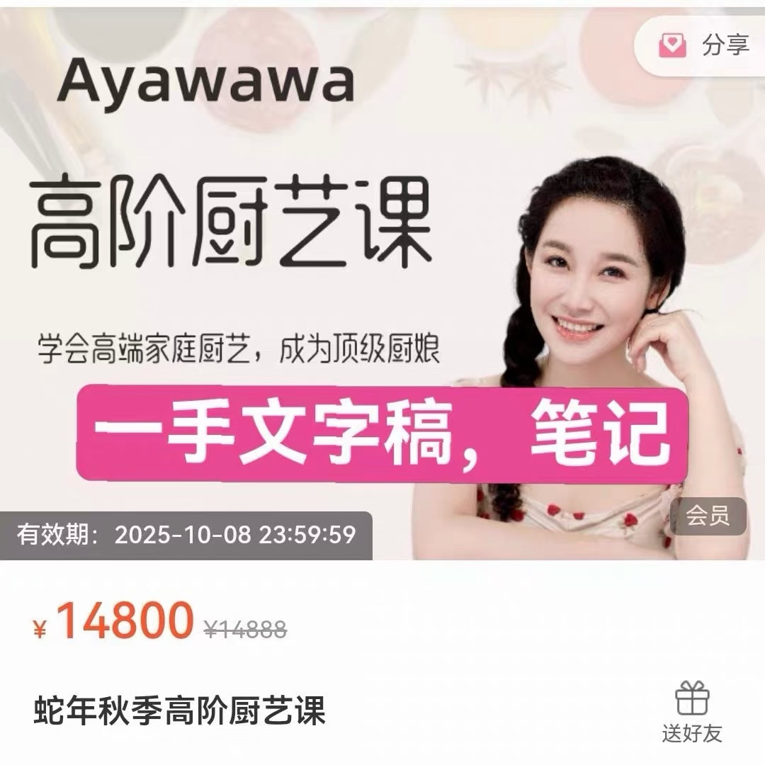 本文于 2025-11-18 16:10 更新,部分内容具有时效性,如有失效,请留言 2025年ayawawa高阶厨艺课10.4-10.5 资源下载资源下载价格39.9元立即购买 或 升级VIP后免费升级VIP①售后QQ:32492069 ②默认解压密码“QQ28222936”