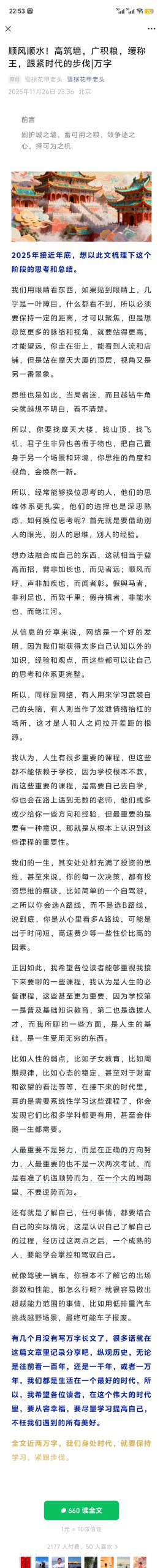 雪球花甲老头付费文:顺风顺水!高筑墙,广积粮。缓称 王,跟紧时代的步伐|万字