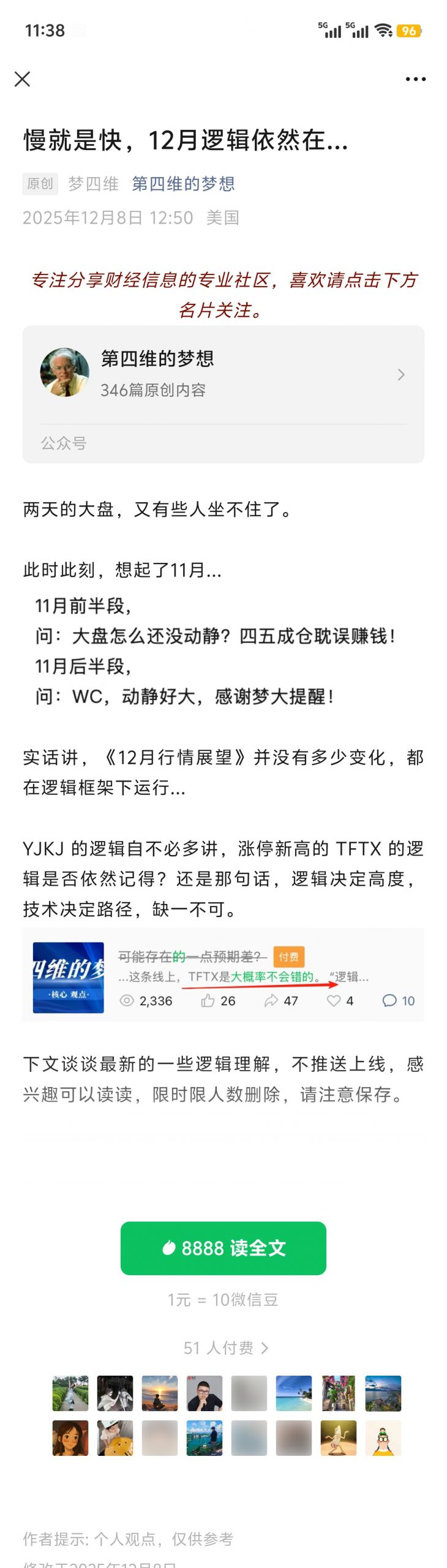 第四维的梦想888元12月8日付费文:慢就是快,12月逻辑依然在
