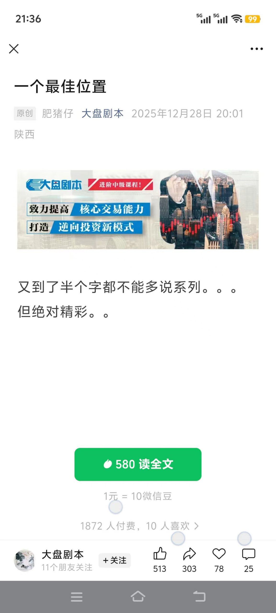 本文于 2025-12-28 23:20 更新,部分内容具有时效性,如有失效,请留言 大盘剧本58元付费文251228:一个最佳位置 已更新付费文VIP群 资源下载资源下载价格9.9元立即购买 或 升级VIP后免费升级VIP①售后QQ:32492069 ②默认解压密码“QQ28222936”