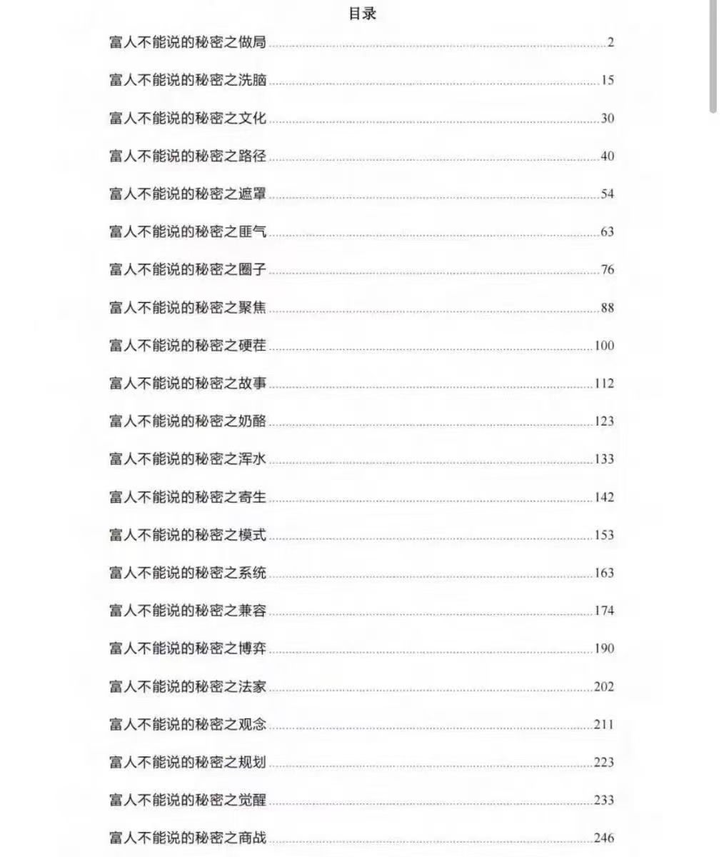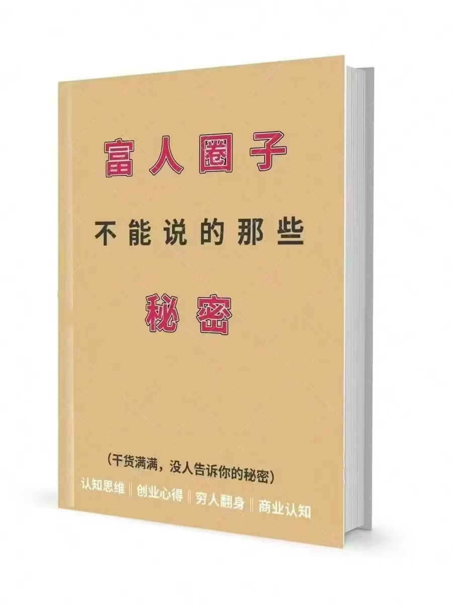 《富人圈子不能说的那些秘密》PDF9.9🧧探索富人圈子的秘密,揭示成功背后的真相!《富人圈子不能说的那些秘密》一书,汇聚了认知思维、创业心得、穷人翻身和商业认知的精华,带你深入理解富人的思维模式和成功策略。通过阅读这本书,你将获得那些“没人告诉你的秘密”,从而在商业世界中占据优势。现在就翻开这本书,开启你的财富之旅吧!