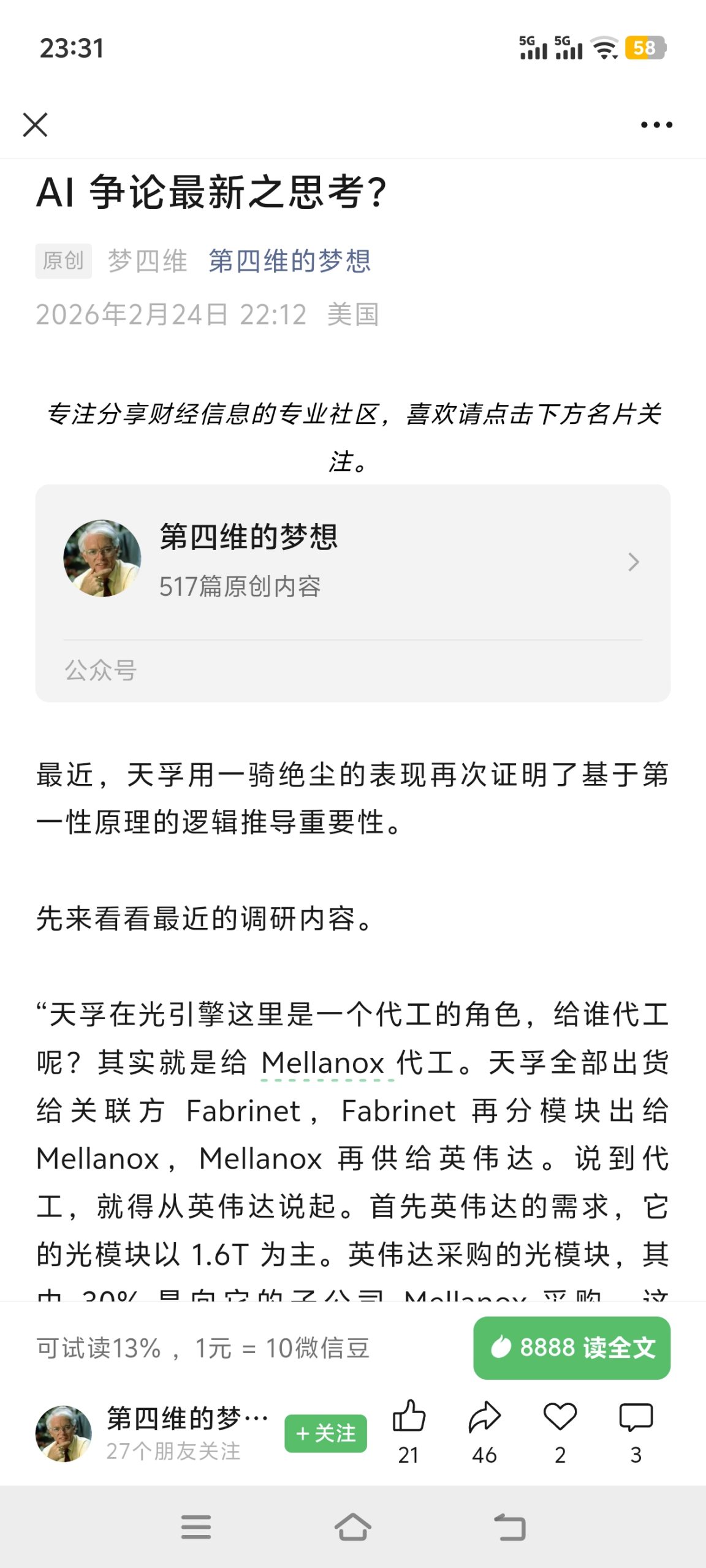 击球区小能手付费文260223:CPO四小龙+光纤企业未来估值分析